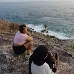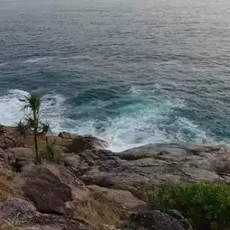 Laem Krating is a natural viewpoint hidden by the sea in Phuket. 🌊 You have to walk through the forest a bit, but when you reach your destination, it's amazing! The sea view as far as the eye can see, the sound of waves gently hitting the rocks, and the cool breeze blowing all the time. 🌬️ 180-degree viewpoint, perfect for sitting quietly and taking a deep breath of fresh air. 🍃