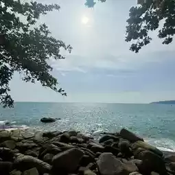 • A café perched on a hill by a rocky cliff, offering panoramic views of Kata and Karon beaches.