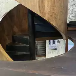 • There are 3 floors connected by a beautiful curved wooden spiral staircase, with a mezzanine floor for an art gallery ()
