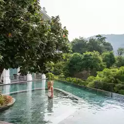 • The swimming pool in the middle of the accommodation is like a secret oasis Among the trees