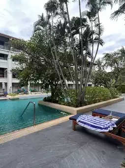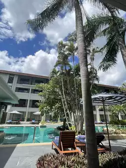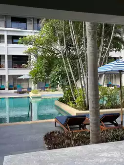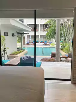 เราเลือกพักห้องแบบ คิดสระว่ายน้ำ (Pool Access) — แค่เปิดประตูระเบียงก็เดินลงสระได้เลย ฟีลเหมือนมีพูลส่วนตัว