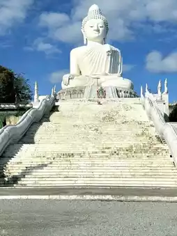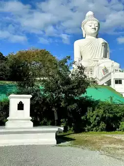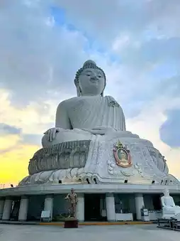 The Big Buddha in Phuket is a huge white statue sitting on a hill, offering peaceful views of the island. While the area around it is closed for now, you can still see it from a nearby viewpoint. Beside it, there’s a smaller golden Buddha and other gold statues that visitors love to take photos with. For a quieter spot, you can also visit Wat Khao Rang in Phuket Town, where a large golden sitting Buddha welcomes you with calm and silence. Both places are great for a short, peaceful visit.