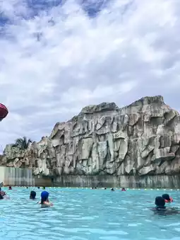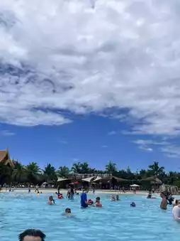 The wave pool is designed to resemble a beach, with rhythmic waves perfect for paddleboarding or simply chilling in the water while gazing at the blue skies and white clouds—so relaxing you won't want to leave!