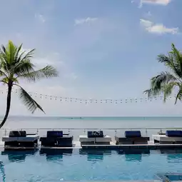 There is a swimming pool with a beautiful sea view. In the evening, it is very chill