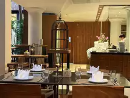 The atmosphere is very nice because the restaurant is open, with a view of the green garden and the pond. The gentle morning sun is the best feeling. Anyone who wakes up early and comes to sip hot coffee here will start the day feeling very refreshed. ☕🌿