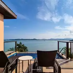 The room we stayed in was the 𝐒𝐚𝐥𝐚 𝐏𝐨𝐨𝐥 𝐕𝐢𝐥𝐥𝐚 room 3007, located on a hill with a sea view. It is a room with the most beautiful sea view. We really like this room. It is a villa with a private pool of a good size. The villa is very spacious. The bathroom has a bathtub with complete amenities. There is a sitting area, a chilling area, and a working area. Especially when the sun is setting, this room is very romantic. 🥰🌅