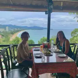 Restaurants and cafes sell international food. There are many to choose from and the prices are not expensive. It is also a small resort. But you have to walk downstairs. There is a private beach. The food is not expensive. You can see the view of Karon Beach. It is a family business. The service is very good. They take good care of customers. If you visit Phuket, go to the Big Buddha, Laem Phromthep. Stop by for lunch. It is near the Three Bays viewpoint.