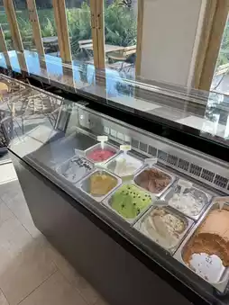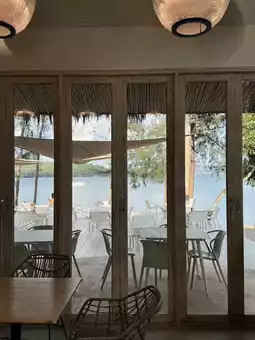 This cafe has a nice atmosphere, offering both savory and sweet dishes. Prices are mid-range, and the atmosphere is reasonably priced. The shop is open and airy, with a signature spot featuring a boat by the sea. If you're short on time, this is a great place to stop by, as it's close to the airport and within easy reach.