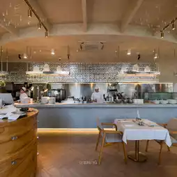 A beautiful, sparkling, luxurious shop, like eating in Pinterest on the pier of a yacht, 𝗥𝗼𝘆𝗮𝗹 𝗣𝗵𝘂𝗸𝗲𝘁 𝗠𝗮𝗿𝗶𝗻𝗮, with clean white tones, clear glass, and shells as a gimmick. No matter which angle you take a picture from, it's beautiful and on gram. 📸 ✨