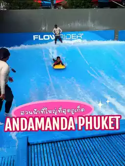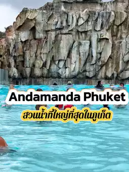 Andamanda Phuket is the largest water park in Phuket. It is located in Kathu District, Phuket Province. It opens every day from 10:00 to 19:00. It is recommended to go at 10:00 because it guarantees that you can play all day long without getting bored. There is food for sale inside, but the price is for foreign tourists. There are many rides, but the most fun is releasing giant waves. At this point, waves will be released for 15 minutes and then rest for 15 minutes. It is a very fun, exciting, and hilarious spot. Especially if you come with a group of friends, it is guaranteed to be hilarious. #andamandaphuket