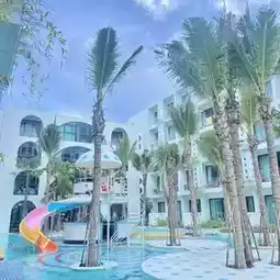 🛝Sugar Marina Pop Kata Hotel is decorated in a minimalist style, cute and bright, teenagers love it, beautiful photo corners, the swimming pool is in the middle of the hotel, very cute