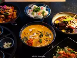 – And a set of royal side dishes, served on a round wooden tray with exquisite fresh flowers as a decoration