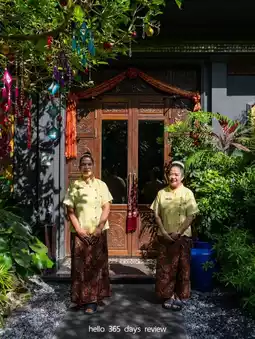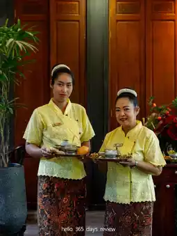 The lobby and spa room are decorated with wooden furniture mixed with the gracefulness of carved patterns and local ornaments that are eye-catching, giving a luxurious and warm feeling.