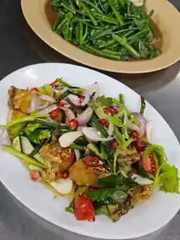 The fish kidney curry here is incredibly rich and spicy. The flavors are well-balanced, with authentic Southern Thai curry flavors, complemented by fresh fish in a rich, thick broth. This dish is a must-try.