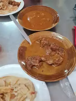 This shop combines both tradition and classic style in every bite. The roti dough is crispy on the outside and soft on the inside, with the aroma of fresh butter and the unique, rich curry flavor. The iced tea goes perfectly with it.