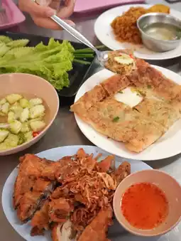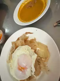 • Egg Roti 🥚 Crispy roti layered with fresh eggs for a smooth, creamy taste. Served with a sweet and creamy dipping sauce.