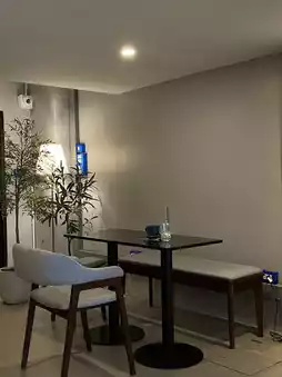 The shop is located on Yaowarat Road. As soon as you step in, you will feel that it is a minimalist shop. It is simple, cool, and warm. There are corners for taking pictures or working in a chill way.  It is not very big, but the space is well-organized and there are plugs to plug in, helping you work comfortably.