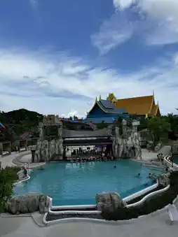 The interior is decorated in a Thai-fantasy theme, with a Thai temple, an ancient city, and a simulated volcano in every corner.