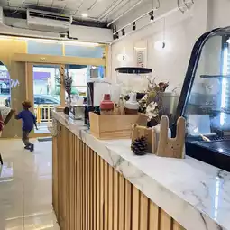 The shop is decorated in a cute cafe style, offering a full selection of savory dishes, desserts, and drinks. 🍛🧁