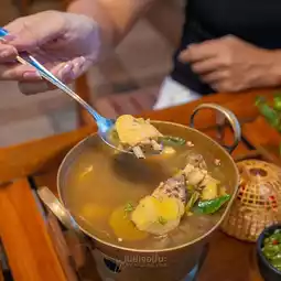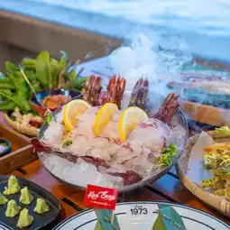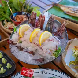 A signature dish, recommended: the "Tiger Prawn Sashimi," is a must-try. The prawns are fresh, juicy, and incredibly sweet. I absolutely love it! They also offer local Phuket dishes like grilled pla mong, boiled wild chicken, fried prawns, shrimp paste chili dip, steamed fish curry, and a selection of well-prepared soft drinks.