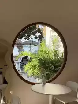 Coming Home is a cute cafe. You can sit inside or enjoy the cool sea breeze outside. It's not too hot, and there are fans. The staff are friendly and helpful. The desserts are so delicious! I ate so much, but I forgot to take a photo. I brought my cat with me, but we sat outside. We went in the evening when the tide was low, and the beach was full of crabs.
