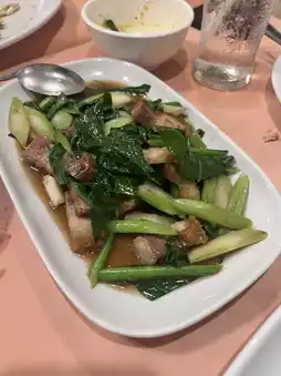 Savory and aromatic, the crispy roasted pork belly pairs perfectly with the wok-fried Chinese kale.