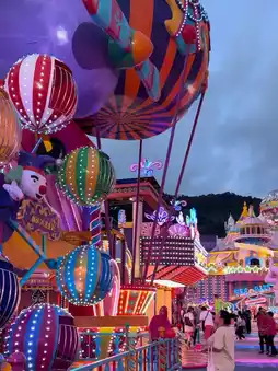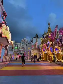As you enter, the first thing that strikes your eye is the intricately decorated interiors. There are several zones to explore, including the Carnival Fun Fair, filled with activities, rides, and colorful photo spots. The highlight is the Kingdom of Lights, featuring over 40 million lights strung together in various patterns, including castles, adorable animals, and symbols of Thai identity, making it one of Phuket's most beautiful photo spots.
