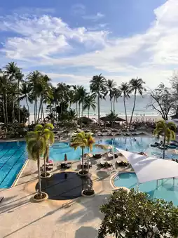 This hotel is ideally situated at the start of Karon Beach, just south of Patong, offering a resort ambiance while being tucked away. It's not walkable to town but still conveniently close to the action. For me, the location was spot-on; I didn't mind taking a Grab (like Uber) to Patong or deeper into Karon. Grab rides are very affordable! The scenery is stunning, and the private beach is phenomenal! Our rooms were okay (I knew some rooms were outdated), but the ocean view room was incredible! I wish I could share my video. My booking included breakfast, which I really enjoyed, and the service was excellent. Everyone greeted us with smiles. Front Desk: The desk can get busy, but Cha was wonderful, suggesting great restaurants and always smiling at us. Overall customer service: I had an incident on the beach, and everyone rushed to help me. They truly assisted. Sandra, the Manager, called, visited, and sent surprises to my room. Their customer service was fantastic! As a Bonvoy member, I was impressed and didn’t even feel the need to request points. Sandra, Booboo, and their team were outstanding. After partying in crowded Patong, returning to this serene spot was a delight. I'm sure once they renovate, the hotel will be even more spectacular. I began my birthday trip in Bangkok and am thrilled to have ended it in Phuket at Le Meridien.
