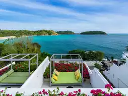 The Nai Harn Phuket is a charming beachfront resort located on Nai Harn Beach in Phuket Province, considered one of the most beautiful beaches in the province. It's also close to the Windmill Viewpoint, Promthep Cape, Rawai Beach, and Laem Krathing, a popular check-in spot for photography enthusiasts.