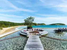 If you're tired of staying in your room, you can head down to the Reflections Lounge, an overwater lounge with panoramic views of Nai Harn Beach. Every angle is photogenic, perfect for a relaxing evening.