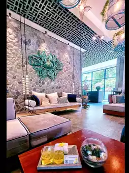 The hotel has great facilities, private villa barbecue, spa massage, climbing wall🧗♂️, large swimming pool🏊♂️, bicycle🚴♀️, table tennis court🏓, badminton court🏸, children's playground🧸. You can also watch a big movie in the pool at night🎞.