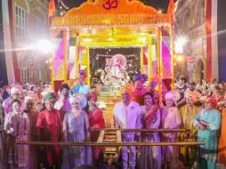 Witness the procession of the auspicious Dhol Tasha drums from Maharashtra, whose thunderous sound reaches the deity.