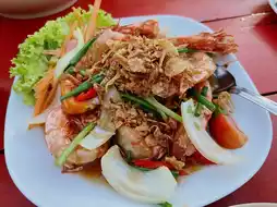 Stir-fried shrimp with tamarind 600฿ (shrimp is charged by weight, 120฿ per 100g). The shrimp are big and very fresh.
