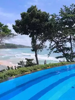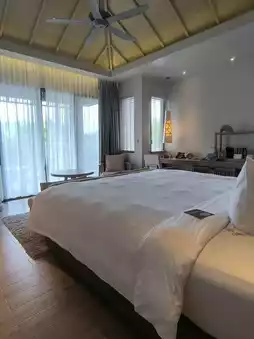 Pullman Phuket Arcadia Naithon Beach is a 5-star hotel located in the serene and peaceful Naithon Beach area, perfect for relaxation. The staff are polite, cheerful, and eager to provide excellent service. The accommodation is situated on a steep hillside, offering private sea views. The rooms are spacious, beautifully decorated, comfortable, and very clean, though there is a slight issue with humidity due to frequent rain. The hotel provides transportation services within the premises, with minimal waiting time. There is a well-equipped fitness center and yoga classes available.