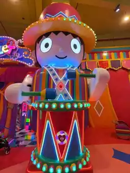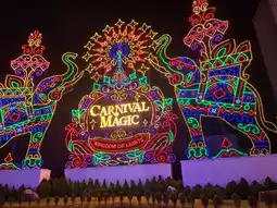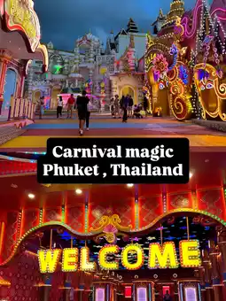 Carnival Magic Phuket, a carnival-themed light show, opens at 5:30 PM. I recommend going early because there are so many activities inside. The area is large and spacious, holding many records. The lights are spectacular. The staff are friendly and cheerful. There are performances in the theater. Cameras and phones are not allowed. The management is excellent. Seats are assigned. It's not crowded. The parade is fun and lively. The kids love it.