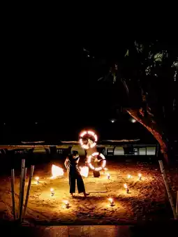A highlight of your stay here is the fire baton show in the dining room. The performers are incredibly talented and the show is beautiful and impressive.