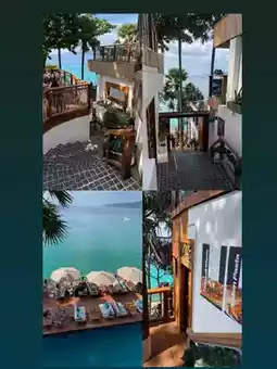 Everyone, it's right there facing the ocean. The place is huge, with several areas offering food, snacks, and drinks. Before entering, you must purchase a dupont for 140 baht per person (this can be used as a credit for food). You can take pictures easily. The stairs continue down to the sea view. I recommend visiting in the evening to watch the sunset and enjoy a relaxing meal. #MustVisitCafe #RelaxingCafe #Phuket #PhuketTravel #WhereToGoPhuket #PhuketAttractions