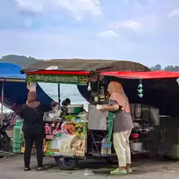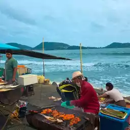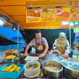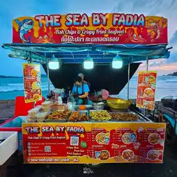 The market serves halal food, including som tam (somtam), grilled chicken, spicy salads, grilled meatballs, fried meatballs, grilled squid, and much more. Definitely worth a visit! Plus, the view of the sunset over the sea is amazing! On some days, the sky turns a beautiful golden yellow.