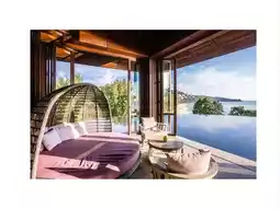 A luxurious cliffside resort with sweeping views of the Andaman Sea. The atmosphere is tranquil and private. 🌿