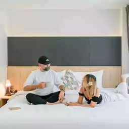 Comfortable sleep, convenient travel, and a communal pool.