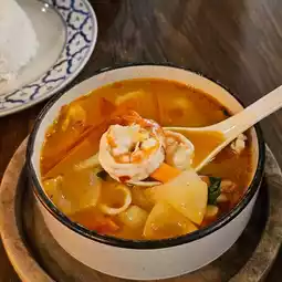 🦪Recommended dishes include Thai cuisine with bold flavors but not too spicy. We recommend the Tom Yum Goong, which is full of Thai flavors. The Tom Kha Gai is also delicious. Alternatively, you can choose from a variety of salads.🍥