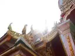 The temple's architecture combines traditional Thai and modern elements, with its vibrant roof colors and intricate carvings exuding a strong spiritual atmosphere. Inside the temple, there are numerous Buddha statues, the most notable being a tall golden Buddha said to bring good fortune and peace to devotees.