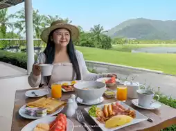 Breakfast is available in both Thai and international options, served at the LOCH NESS restaurant overlooking the golf course. In the evening, enjoy dinner at the TIN CUP restaurant, which offers a fantastic atmosphere. Alternatively, you can order it delivered to your accommodation.