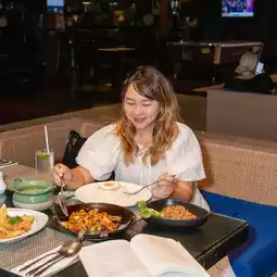 Breakfast is available, including Thai and international dishes, and there's a snack section for the kids. In the evening, you can stop by the hotel's restaurant. Even if you don't want to go out, you can still enjoy a delicious meal with the whole family.