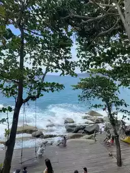 For those who love to chill, we recommend this cafe. It's a popular check-in spot, attracting a huge number of Thai and international tourists. As soon as you enter, you'll be sure to find a seat. We give it a 10/10 rating. The atmosphere is incredibly natural. Sit back and enjoy the sound of the waves, the wind, and the sea. 🌊 Super chill! 💚