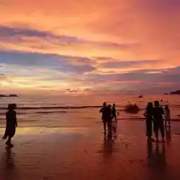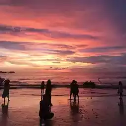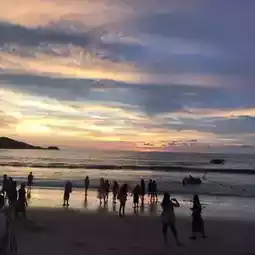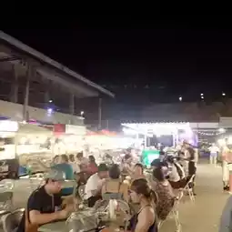 After enjoying the sunset, I ate in a bustling town lined with many shops and food stalls 🍽