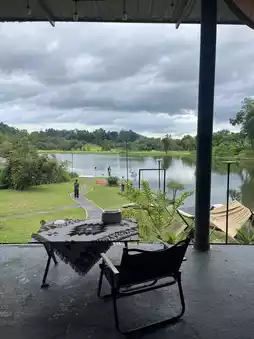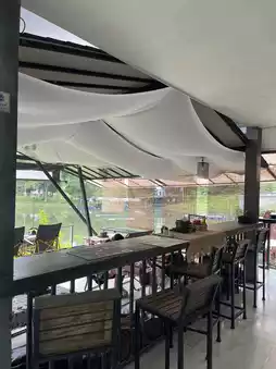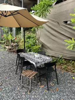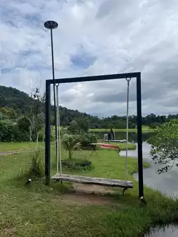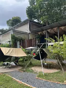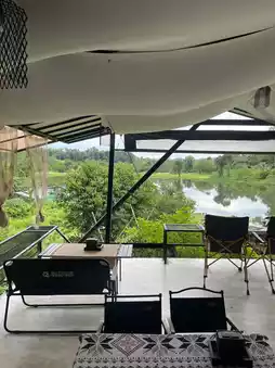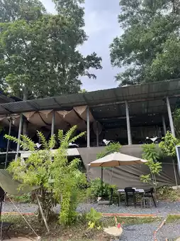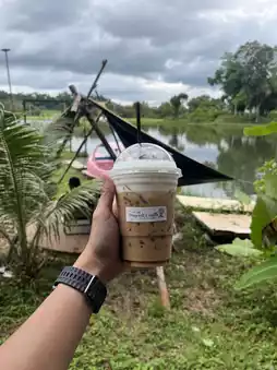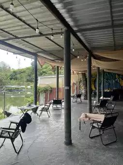 Atmosphere: This cafe offers a camping-like atmosphere amidst beautiful nature, with lush greenery and a pond (like a small pond/reservoir) providing a refreshing and cool atmosphere.
