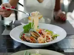 Breakfast here is delicious and varied, with freshly baked croissants, freshly squeezed orange juice, and savory Thai dishes like seafood salad and fresh shrimp pad thai, beautifully presented like a cafe.