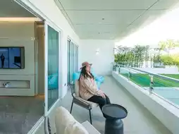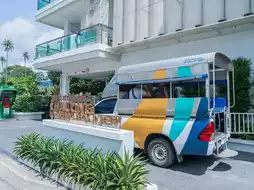 😎 The rooftop also features a swimming pool with sea views and Chalong Pier, as well as a fitness center. Cooking classes are also available, including evening movies on the rooftop, stargazing, and the relaxing sea breeze. There's also a free shuttle bus to and from Nai Harn and Rawai Beaches daily. If you're hungry, head to Bay Ground Bistro, which offers all-day dining and a breakfast buffet with a variety of simple options. Or you can walk to the convenience store at the entrance of the alley, where there's a 7-11.