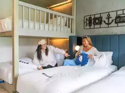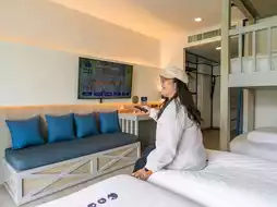 Another recommended place to stay! When you see a sheep, rest assured. The room is in a nice loft style, with a comfortable bed and clean bathroom. It's fully equipped with amenities, and the price is definitely affordable. This trip, I stayed in the Koko Party room, which can accommodate four people. It has a king-size bed and a bunk bed. The bathroom amenities are complete, and there's a balcony with a seating area, luggage storage, and a sitting area for work. The space is well-equipped, making excellent use of the space.